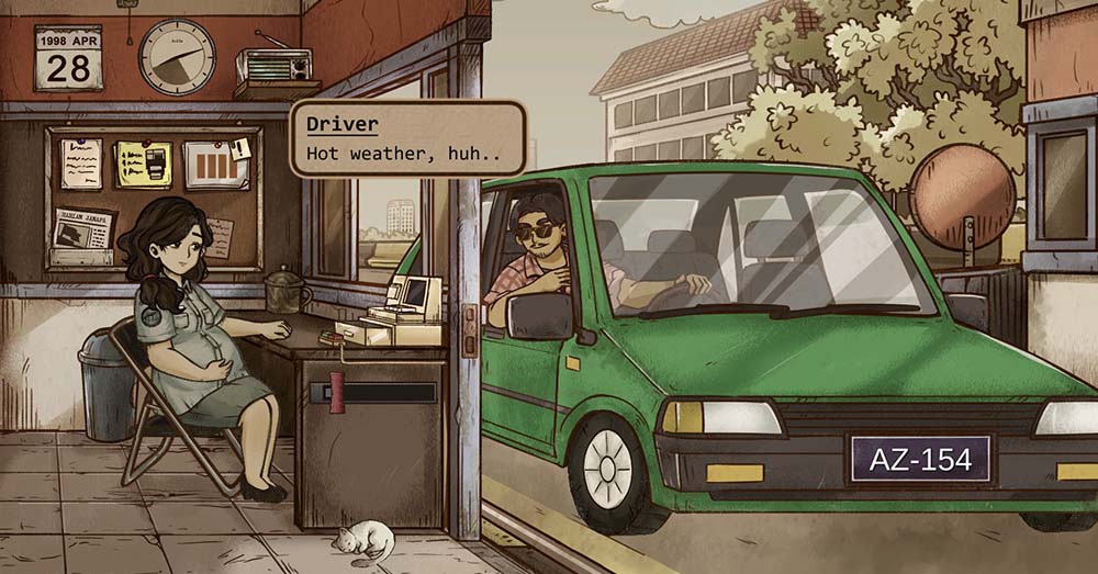 Game ini nggak mencoba menjadikan pemain sebagai pahlawan yang menyelamatkan dunia. Justru sebaliknya — kamu akan berperan sebagai Dewi, seorang penjaga gerbang tol yang sedang hamil dan berusaha keras bertahan hidup bersama keluarganya di tengah situasi penuh ketidakpastian.