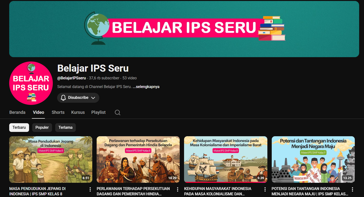 Akun YouTube Belajar IPS Seru jadi salah satu rekomendasi utama untuk siswa SMP yang ingin memahami IPS secara sistematis. Channel ini menyajikan materi IPS untuk kelas 7, 8, dan 9 dengan pembahasan yang rapi dan sesuai kurikulum nasional.
