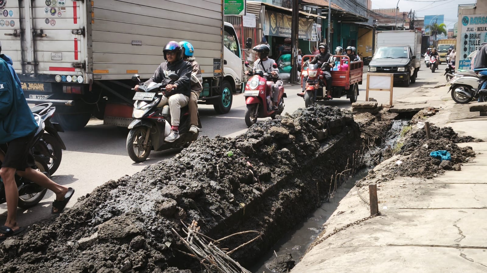 BANDUNG, Prolitenews — Warga Jalan Cigondewah Kidul mengeluhkan aktivitas galian saluran. Pasalnya material galian atau brangkal yang dibiarkan menumpuk di pinggir jalan tanpa papan peringatan membuat ruas jalan menyempit hingga memicu kecelakaan.
