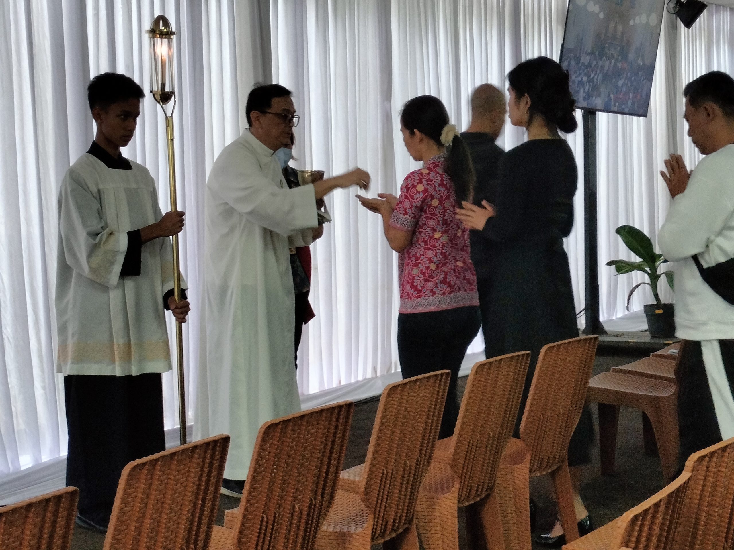 Perwakilan Pastoran, Fr. Marchelino Joshua mengatakan tema natal tahun ini adalah “Allah Hadir untuk Menyelamatkan Keluarga”.