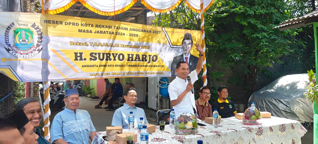 BEKASI, Prolite – Anggota Komisi II Dewan Perwakilan Rakyat Daerah (DPRD) Kota Bekasi dari Daerah Pemilihan (Dapil) II, H. Suryo Harjo, sukses menggelar kegiatan Reses Masa Sidang III Tahun 2025 di wilayah Kecamatan Medan Satria pada hari Minggu, 9 November 2025, mulai pukul 09.00 WIB.
