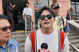 Rizky Febian yang merupakan anak pertama dari mendiam Lina Jubaedah menghadiri proses mediasi yang berlangsung di Pengdilan Agama Bandung, Jalan Terusan Jakarta, Kecamatan Antapani.